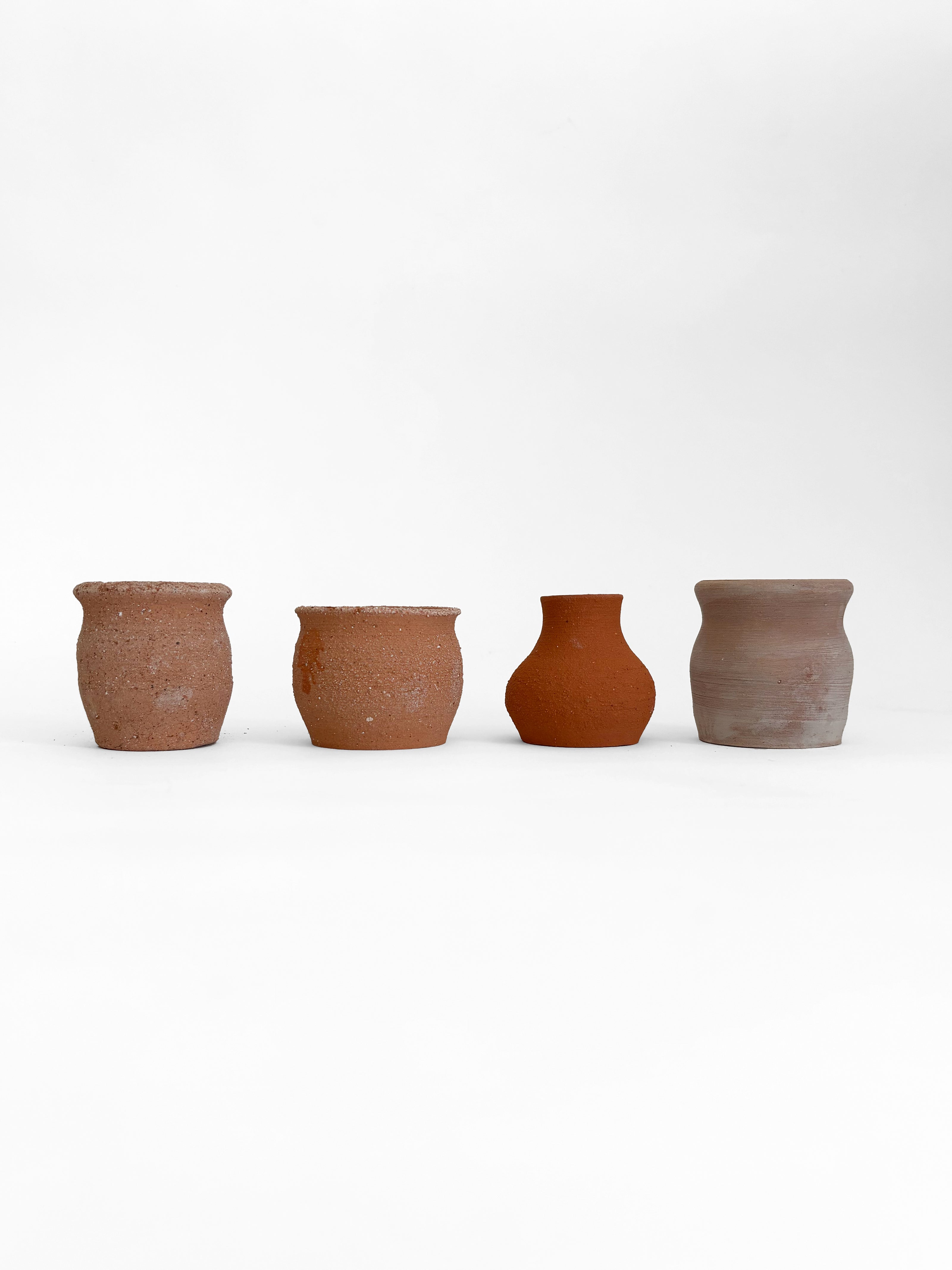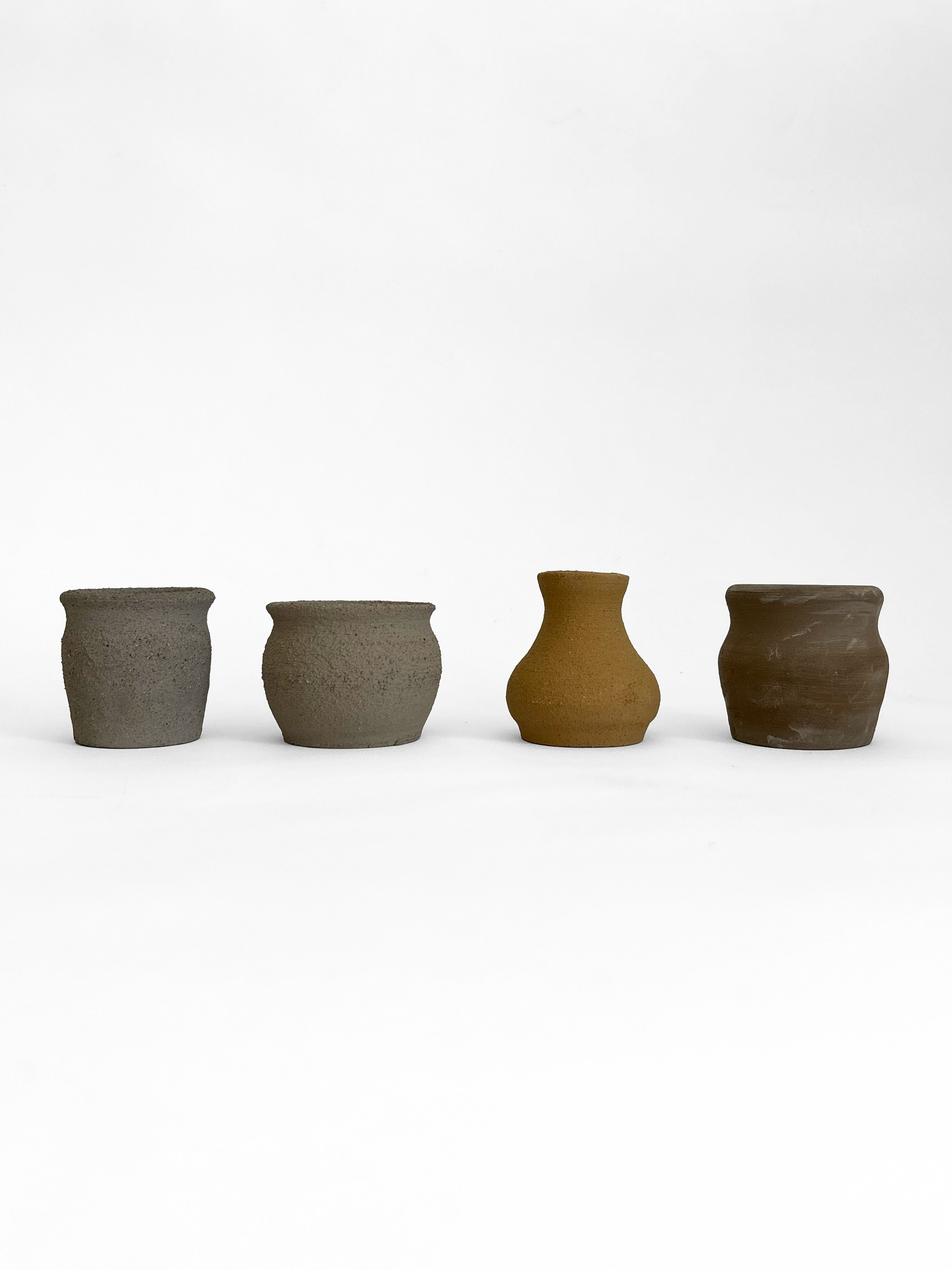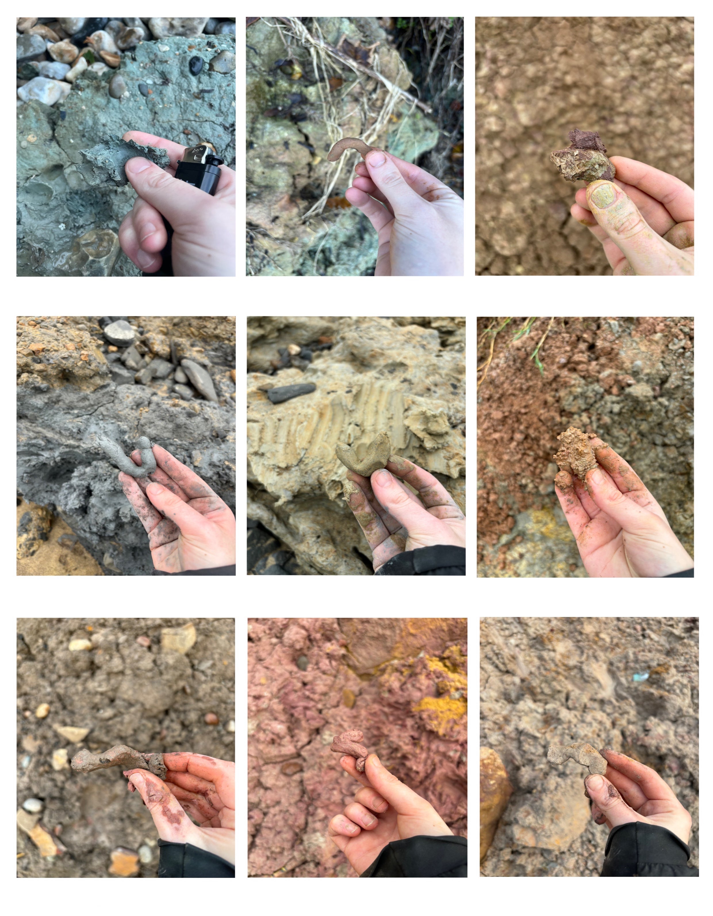 The images above showcase clay collected from around London. The larger pot is made from clay gathered along the River Thames. The test small test pots are shown in both raw and fired forms, made from various clays collected in different areas across London.