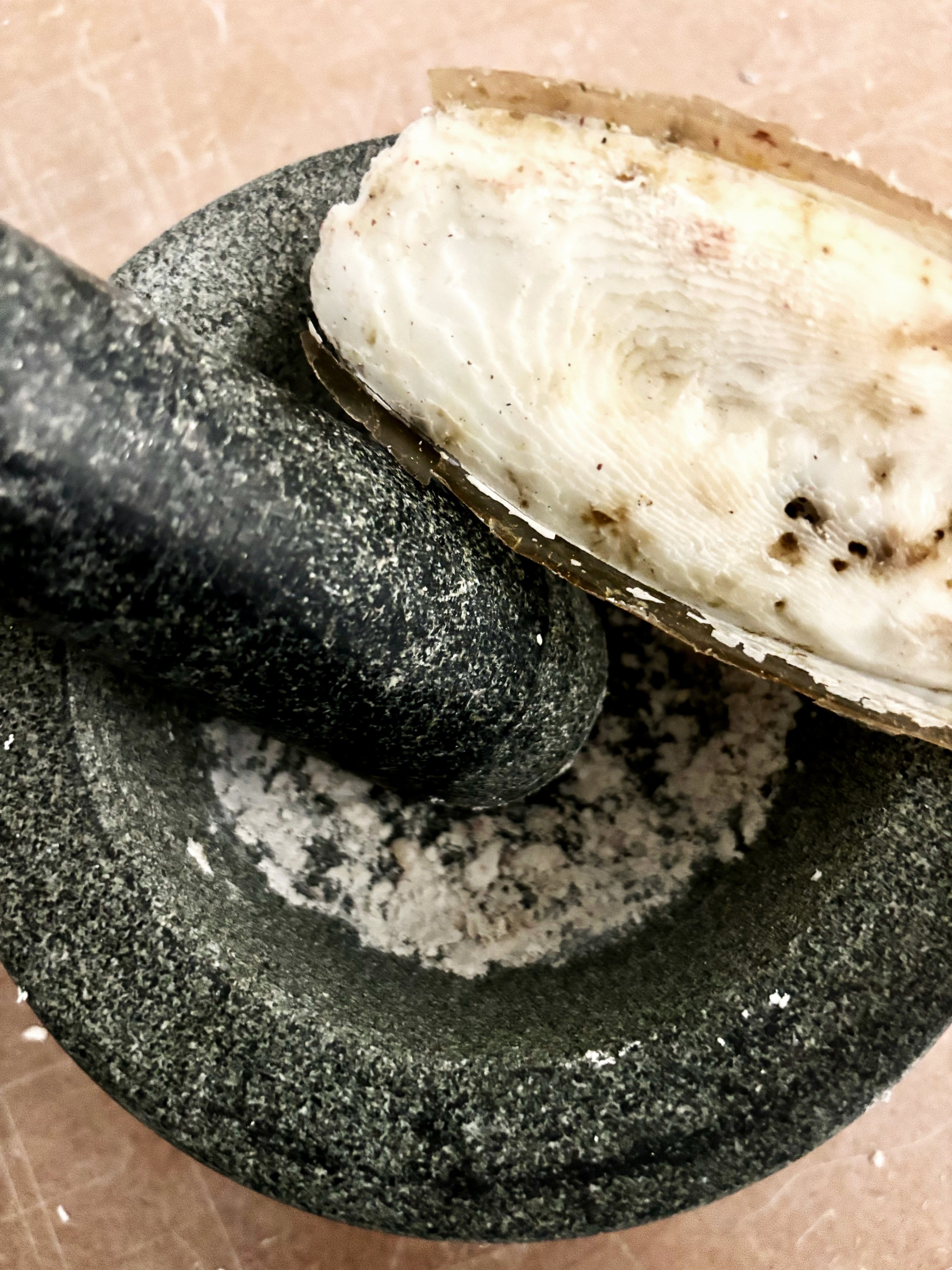 Glaze made from natural materials collected around the Isle of Wight. Including wild clay, chalk rock and ash from burnt seaweed.