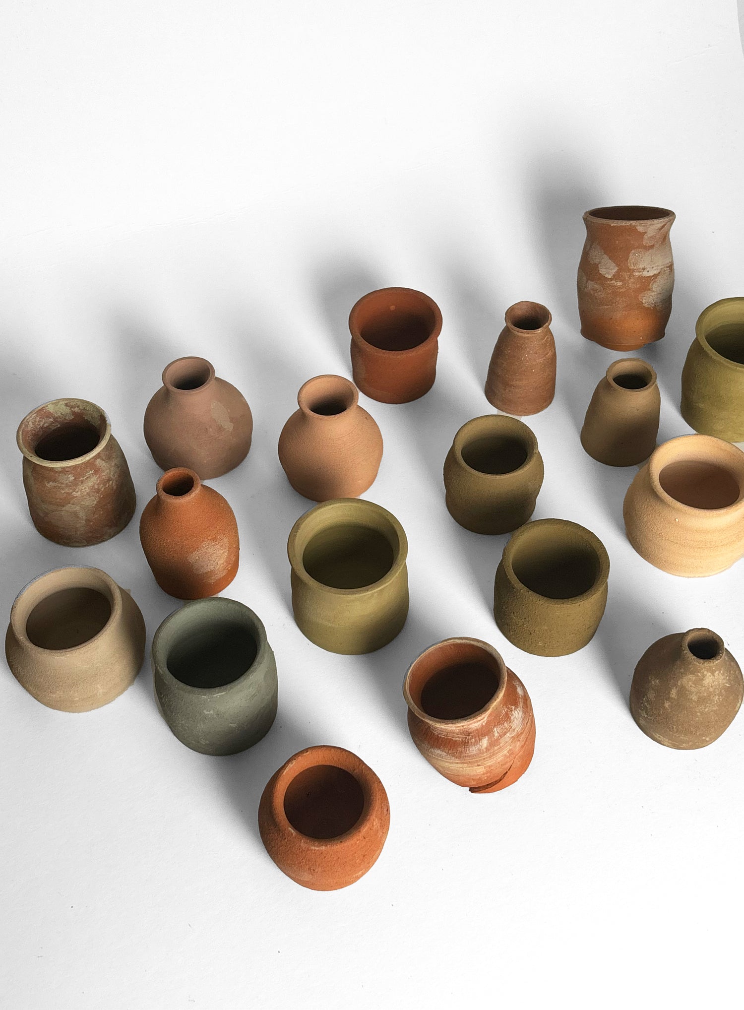This project investigates a sense of place through materiality. Taking an exploratory approach, Neve Beill walked along areas of the River Thames and the coast of the Isle of Wight, collecting various wild clays and other natural materials to create two distinct collections of pots and compare outcomes.
