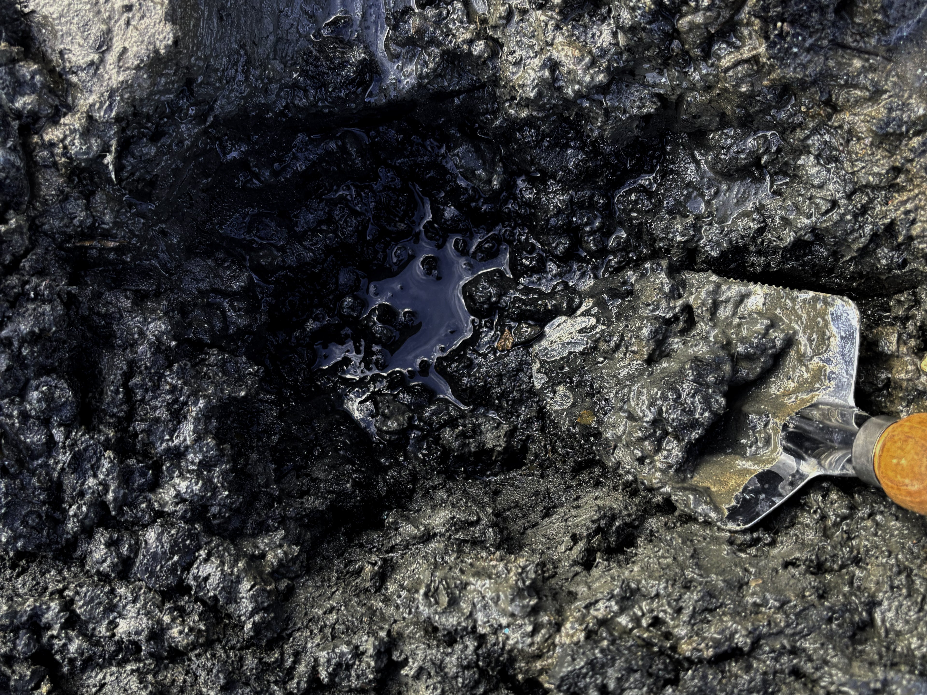 Some of my early test pots revealed a shiny, iridescent quality, not from the clay itself, but from these tiny glass particles. That unexpected result inspired the final piece in this collection. I decided to deliberately reintroduce some of the glass shards I had originally removed, embedding them into the surface of the pot after it had been thrown. When fired in the kiln, the vitrified clay and melting glass fused together, creating an effect that speaks directly to the raw, polluted materiality of the Thames. Feedback from a mudlarker, revealed that the iridescent sheen of the melted glass echoed the visual qualities of the river’s surface, shimmering and reflective due to oil pollution.