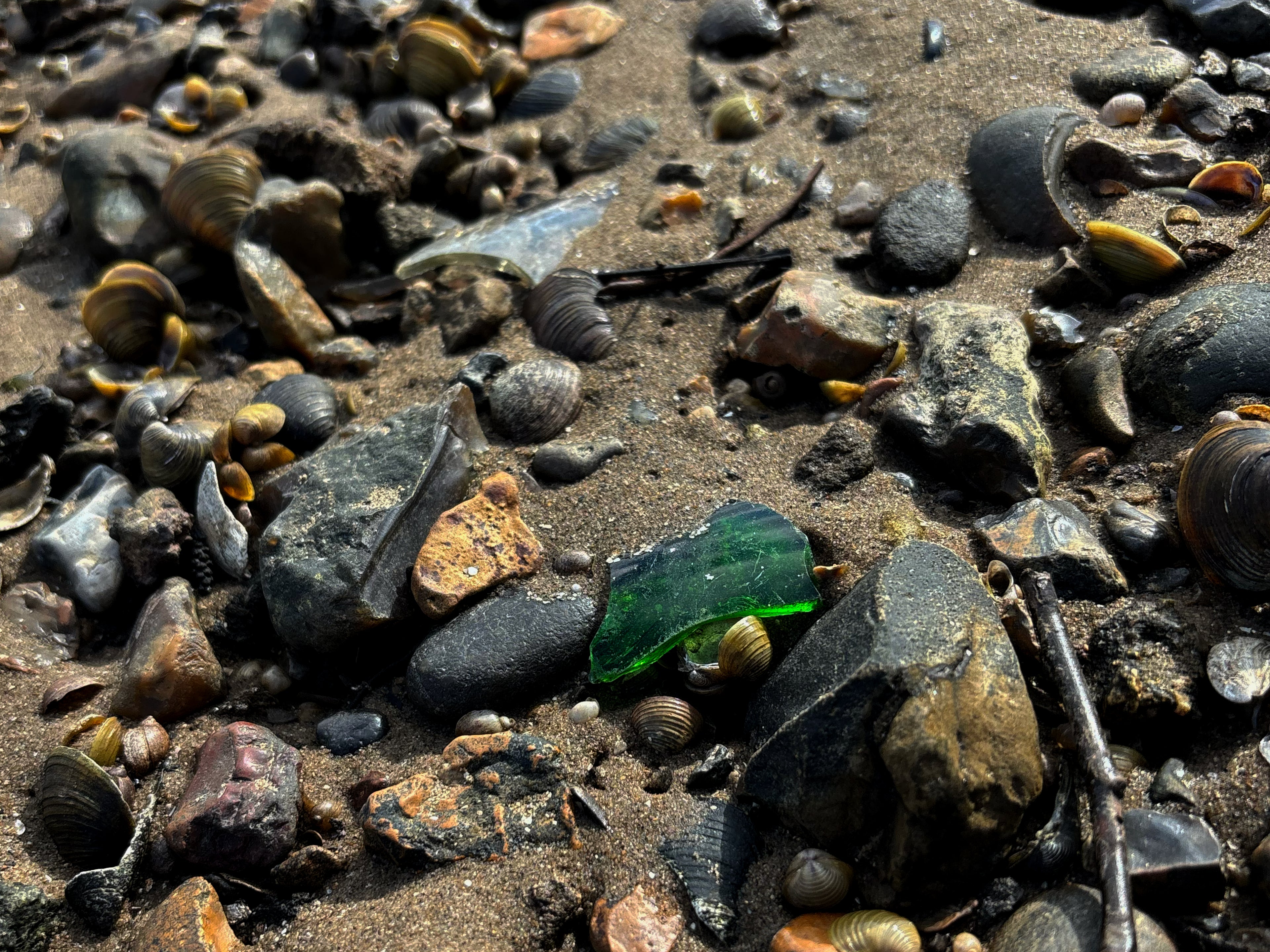 When walking along areas of the foreshore and collecting clay, it was vital to wear gloves, due to the River being heavily polluted with, glass, plastic and sewage. One thing that struck me was the amount of glass, even within the clay I dug up. As I reclaimed the clay, I was constantly picking out shards of glass. I wasn’t sure if these came from within the clay itself, or had been dug up nearer the surface, when I was digging down for the clay. Either way, it was slightly unsettling.