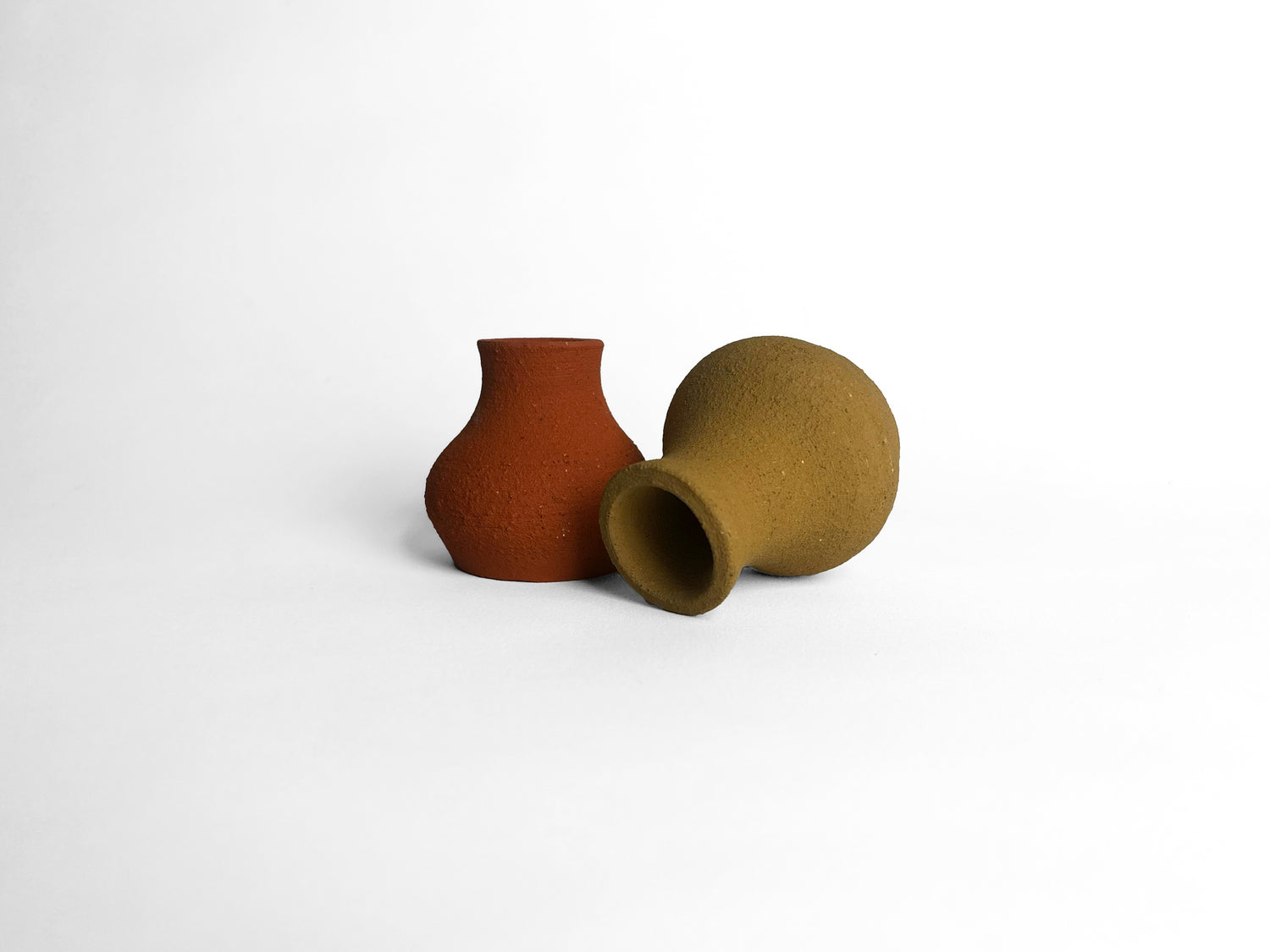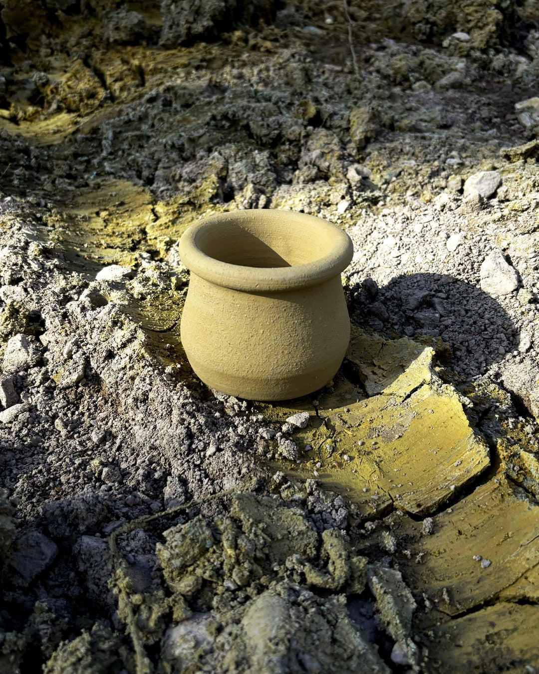 This clay from Wimbledon Woods fired a deep red. This is common for clay found in highly wooded areas due to iron oxide minerals. Beill is currently developing a range of ways to put this ‘waste material’ to use, whether this is through adding it to ash glaze recipes, or creating domestic wares and sculptural pieces made using this clay.