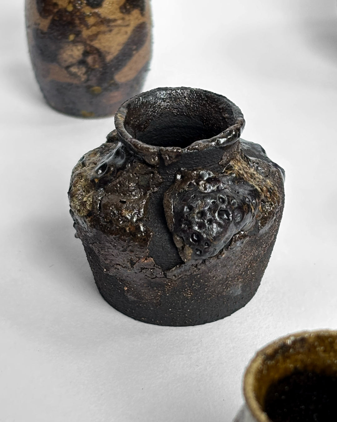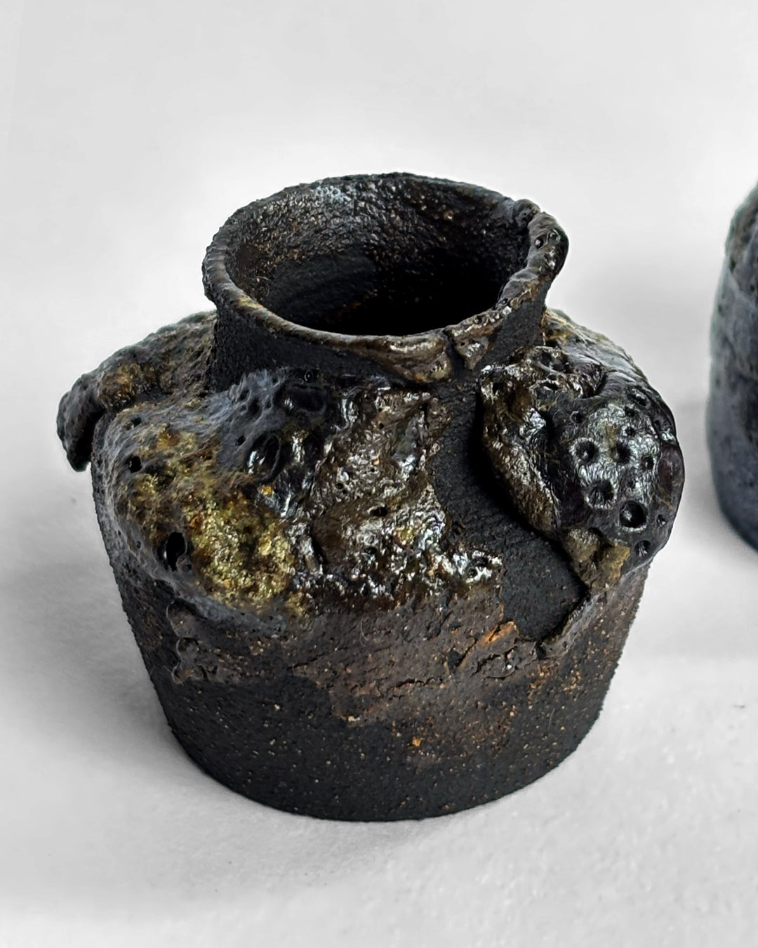 Thames Matter is a collection of miniature pots, created using materials collected along the River Thames. The purpose behind this collection is to allow you to hold a piece of the Thames in your hands, creating a connection to a location through touch. Each piece reflects the tones, textures and tactile qualities of the River Thames. Added details are individual, reflecting what I documented, learnt and found on my journeys Mudlarking the Thames.