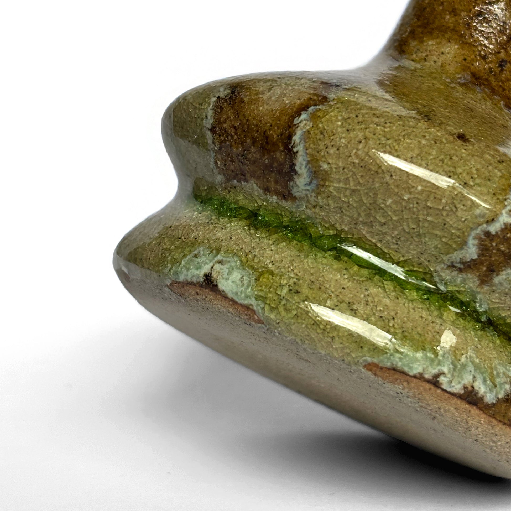 The main form is made from buff stoneware clay, while the glaze is a blend of waste materials: glass shards from broken beer bottles, cigarette ash from a local pub, and London clay sourced from a construction site in Wimbledon.